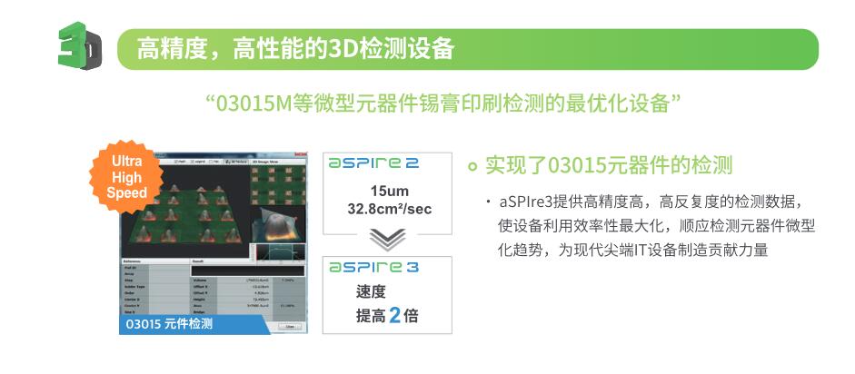 KOH YOUNG/高永 aSPIre 3 锡膏检测机功能特点 ●测量精度和检测可靠性行业领先 - 可消除阴影问题、基本水平设置和投影方向问题 - 全三维异物检测蘑菇短视频免费,适用于整个 PCB - 高生产力与最高精度珠联璧合。