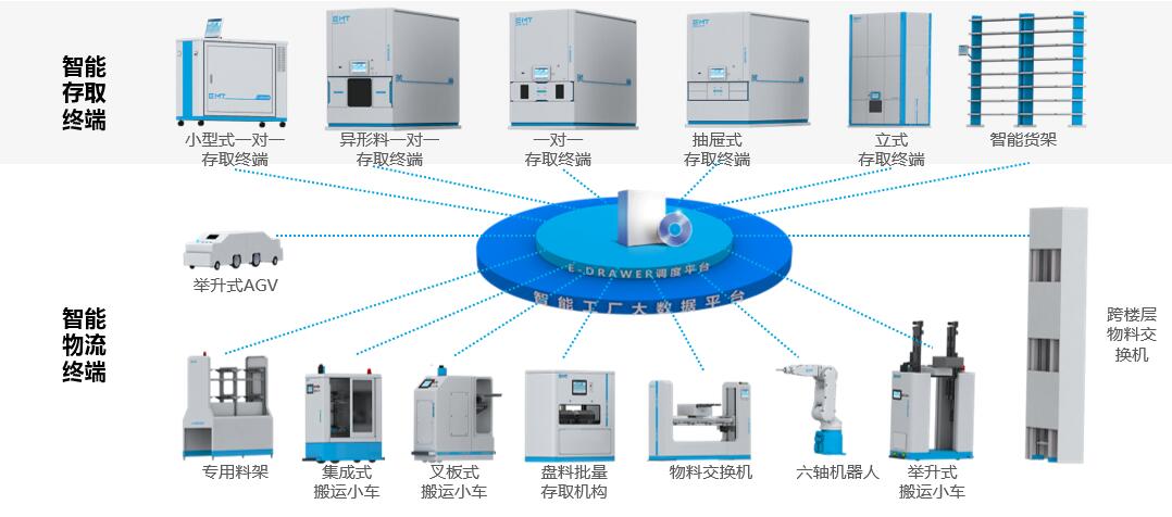 E-Drawer调度平台+标准料一对一+机械手+接驳平台+集成式搬运小车